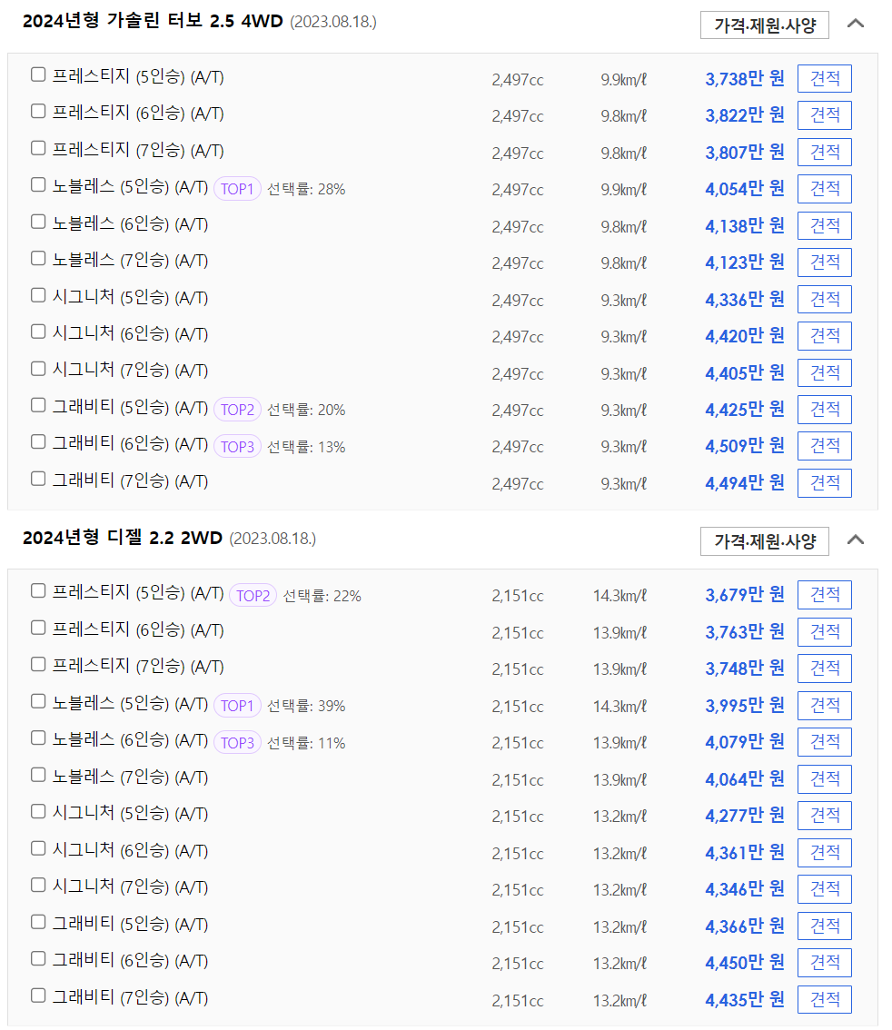 아래에서는 각 차량별 디자인과 가격표를 보여드릴 테니, 참고하시면 좋을 것 같습니다.