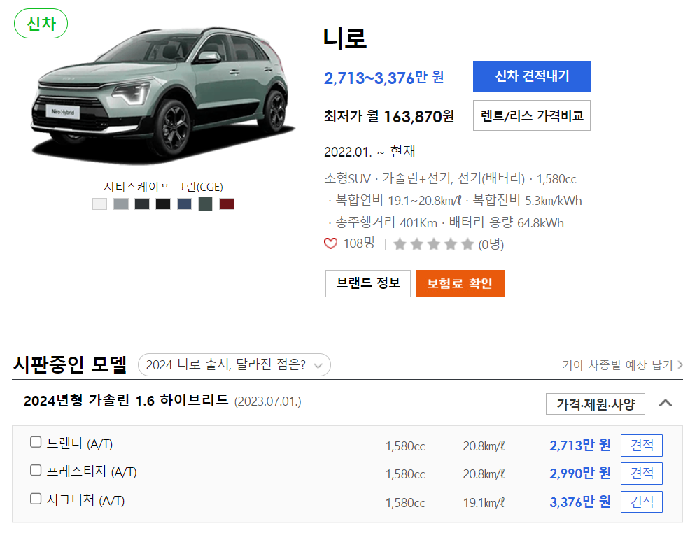 👇👇👇👇 니로 신차 가격표 다운로드 👇👇👇👇